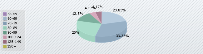 | 56-59 | 60-69 | 70-79 | 80-89 | 90-99 | 100-124 | 125-149 | 150+ |