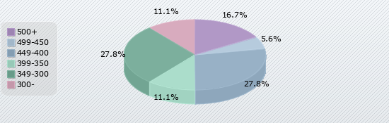 | 500+ | 499-450 | 449-400 | 399-350 | 349-300 | 300- |