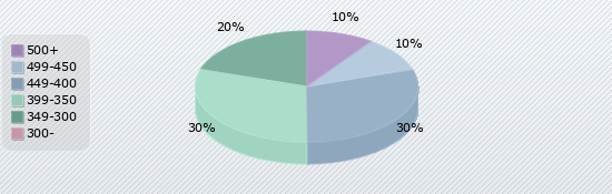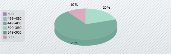 | 500+ | 499-450 | 449-400 | 399-350 | 349-300 | 300- |