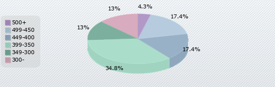 | 500+ | 499-450 | 449-400 | 399-350 | 349-300 | 300- |