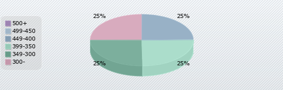 | 500+ | 499-450 | 449-400 | 399-350 | 349-300 | 300- |