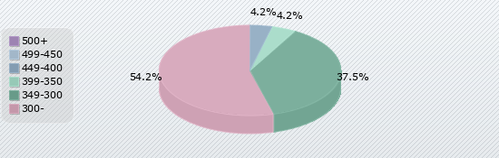 | 500+ | 499-450 | 449-400 | 399-350 | 349-300 | 300- |