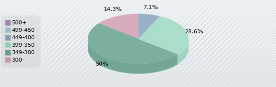 | 500+ | 499-450 | 449-400 | 399-350 | 349-300 | 300- |