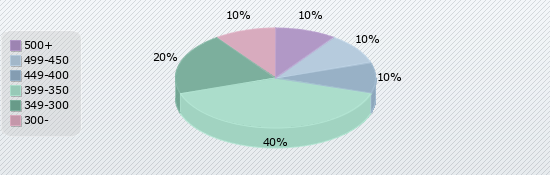 | 500+ | 499-450 | 449-400 | 399-350 | 349-300 | 300- |