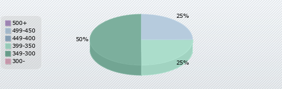 | 500+ | 499-450 | 449-400 | 399-350 | 349-300 | 300- |