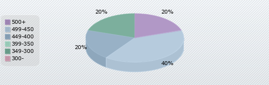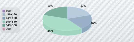 | 500+ | 499-450 | 449-400 | 399-350 | 349-300 | 300- |