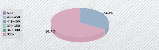 | 500+ | 499-450 | 449-400 | 399-350 | 349-300 | 300- |