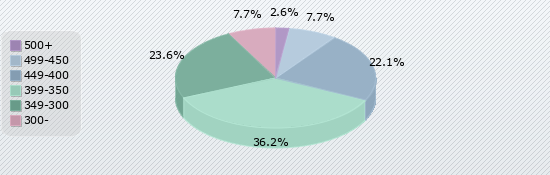 | 500+ | 499-450 | 449-400 | 399-350 | 349-300 | 300- |