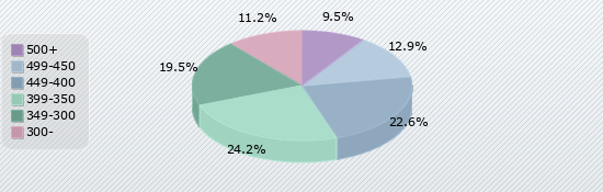 | 500+ | 499-450 | 449-400 | 399-350 | 349-300 | 300- |