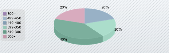 | 500+ | 499-450 | 449-400 | 399-350 | 349-300 | 300- |