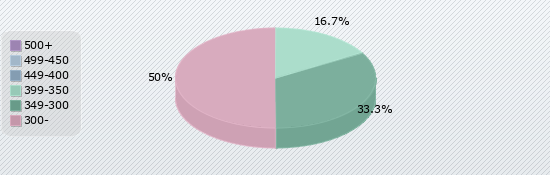 | 500+ | 499-450 | 449-400 | 399-350 | 349-300 | 300- |