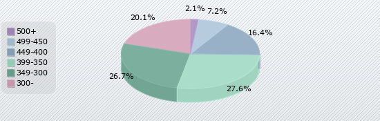 | 500+ | 499-450 | 449-400 | 399-350 | 349-300 | 300- |