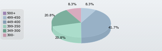 | 500+ | 499-450 | 449-400 | 399-350 | 349-300 | 300- |