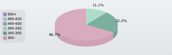 | 500+ | 499-450 | 449-400 | 399-350 | 349-300 | 300- |