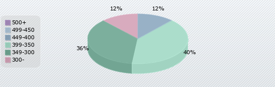 | 500+ | 499-450 | 449-400 | 399-350 | 349-300 | 300- |