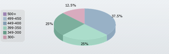 | 500+ | 499-450 | 449-400 | 399-350 | 349-300 | 300- |