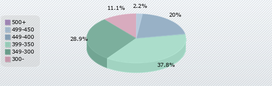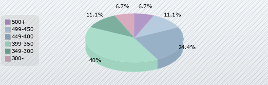 | 500+ | 499-450 | 449-400 | 399-350 | 349-300 | 300- |