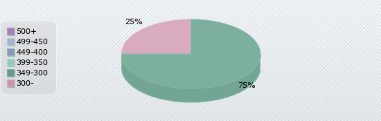 | 500+ | 499-450 | 449-400 | 399-350 | 349-300 | 300- |