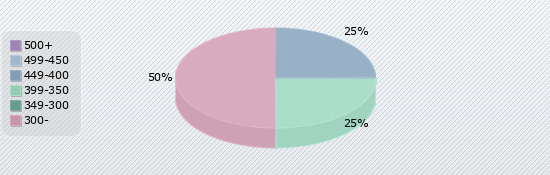 | 500+ | 499-450 | 449-400 | 399-350 | 349-300 | 300- |