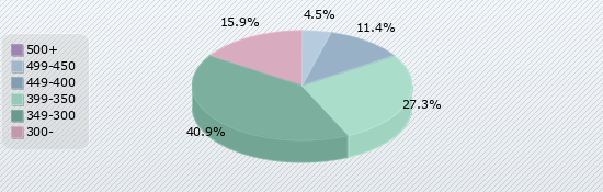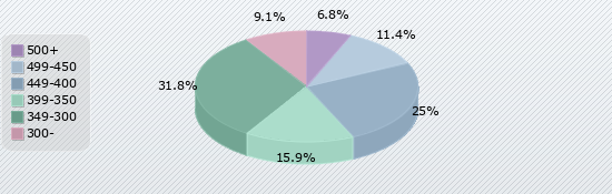 | 500+ | 499-450 | 449-400 | 399-350 | 349-300 | 300- |