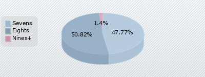| 13 (0.82%) | 403 (25.44%) | 638 (40.28%) | 367 (23.17%) | 116 (7.32%) | 30 (1.89%) | 9 (0.57%) | 8 (0.51%) |