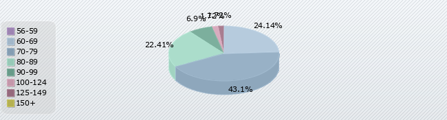| 56-59 | 60-69 | 70-79 | 80-89 | 90-99 | 100-124 | 125-149 | 150+ |