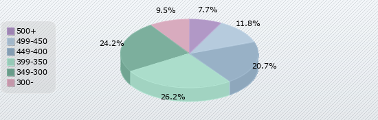 | 500+ | 499-450 | 449-400 | 399-350 | 349-300 | 300- |