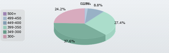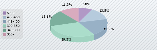 | 500+ | 499-450 | 449-400 | 399-350 | 349-300 | 300- |