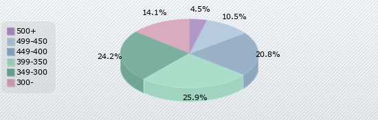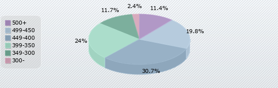 | 500+ | 499-450 | 449-400 | 399-350 | 349-300 | 300- |