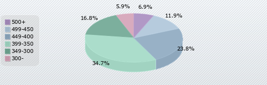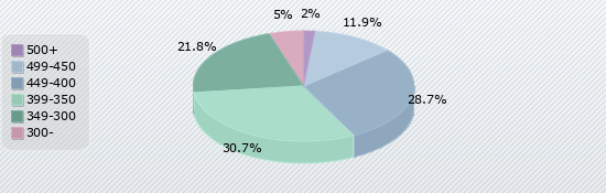 | 500+ | 499-450 | 449-400 | 399-350 | 349-300 | 300- |