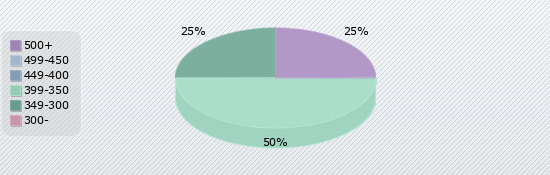 | 500+ | 499-450 | 449-400 | 399-350 | 349-300 | 300- |