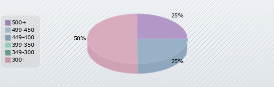 | 500+ | 499-450 | 449-400 | 399-350 | 349-300 | 300- |
