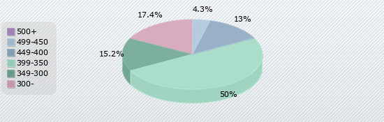 | 500+ | 499-450 | 449-400 | 399-350 | 349-300 | 300- |