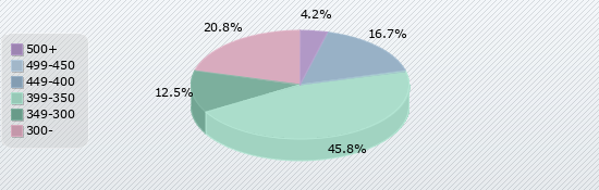 | 500+ | 499-450 | 449-400 | 399-350 | 349-300 | 300- |