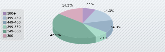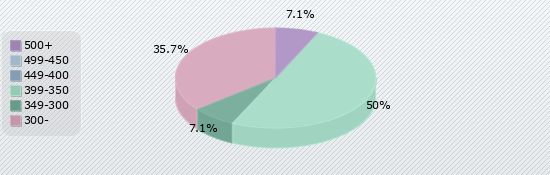 | 500+ | 499-450 | 449-400 | 399-350 | 349-300 | 300- |