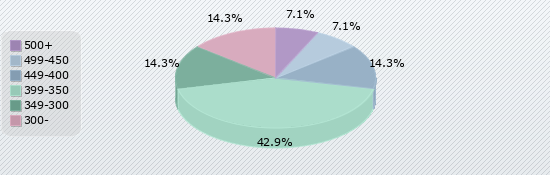 | 500+ | 499-450 | 449-400 | 399-350 | 349-300 | 300- |