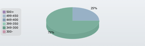 | 500+ | 499-450 | 449-400 | 399-350 | 349-300 | 300- |