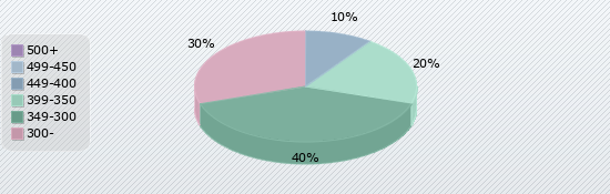 | 500+ | 499-450 | 449-400 | 399-350 | 349-300 | 300- |