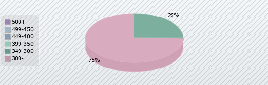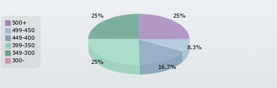 | 500+ | 499-450 | 449-400 | 399-350 | 349-300 | 300- |