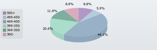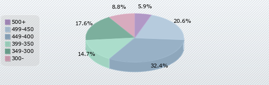 | 500+ | 499-450 | 449-400 | 399-350 | 349-300 | 300- |