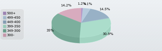 | 500+ | 499-450 | 449-400 | 399-350 | 349-300 | 300- |