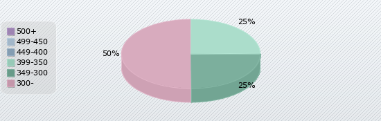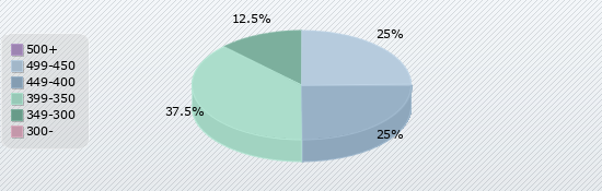 | 500+ | 499-450 | 449-400 | 399-350 | 349-300 | 300- |