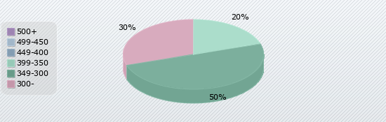 | 500+ | 499-450 | 449-400 | 399-350 | 349-300 | 300- |