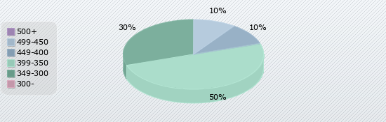 | 500+ | 499-450 | 449-400 | 399-350 | 349-300 | 300- |