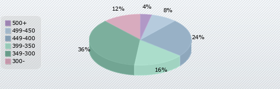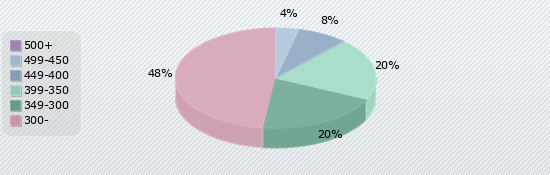 | 500+ | 499-450 | 449-400 | 399-350 | 349-300 | 300- |