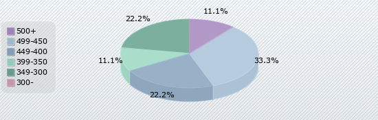 | 500+ | 499-450 | 449-400 | 399-350 | 349-300 | 300- |