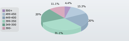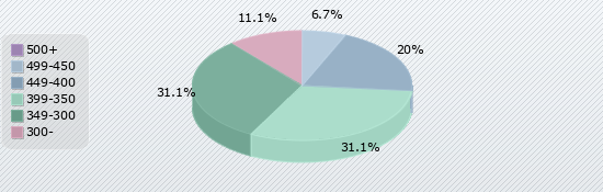 | 500+ | 499-450 | 449-400 | 399-350 | 349-300 | 300- |