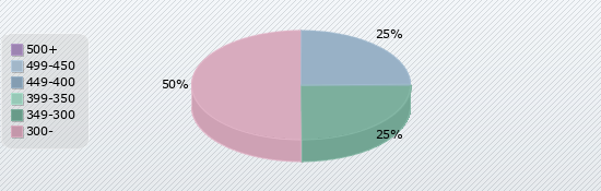 | 500+ | 499-450 | 449-400 | 399-350 | 349-300 | 300- |