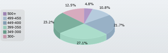 | 500+ | 499-450 | 449-400 | 399-350 | 349-300 | 300- |